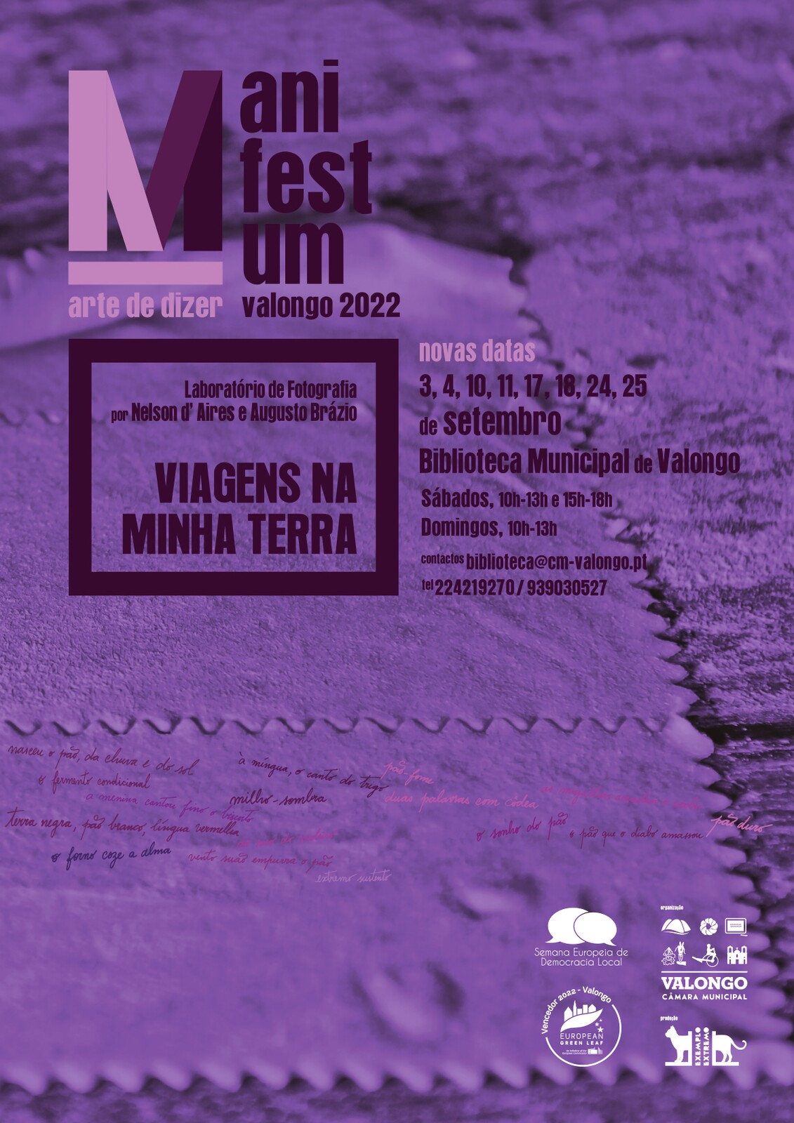 MANIFESTUM arte de dizer 2022, promovido pelo Município de Valongo e produzido pela Exemplo Extremo, apresenta a Laboratório de Fotografia VIAGENS NA MINHA TERRA orientado pelos fotógrafos Nelson d’Aires e Augusto Brázio.