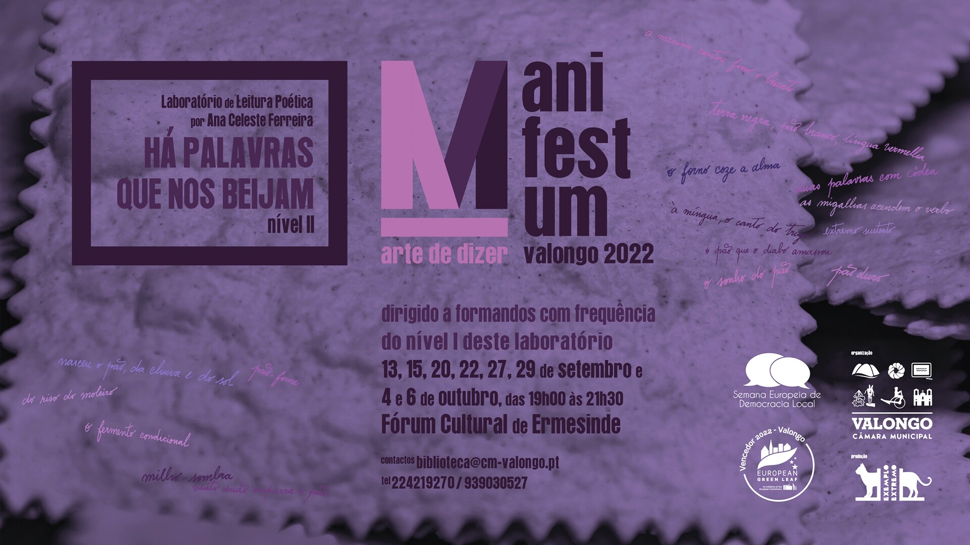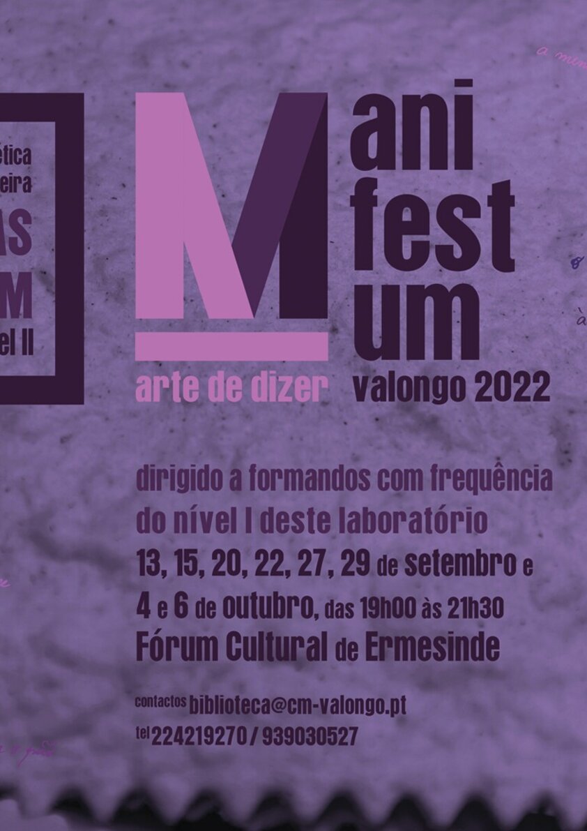 Laboratório no âmbito da programação do MANIFESTUM arte de dizer | Valongo 2022, evento com organização do Município de Valongo, produção da Exemplo Extremo e coordenação da Biblioteca Municipal de Valongo.