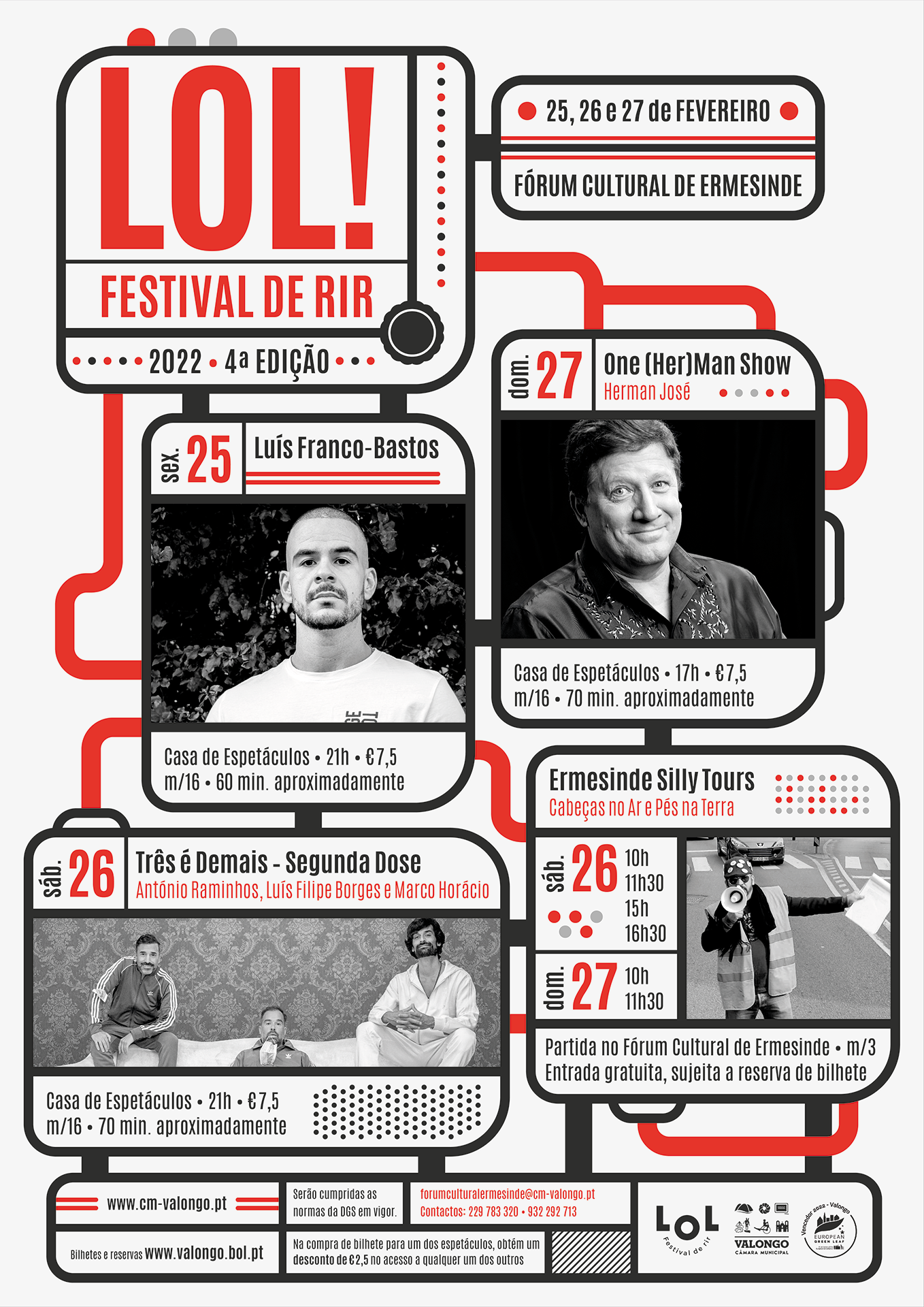 A quarta edição do LOL! - Festival de RiR realiza-se nos dias 25, 26 e 27 de Fevereiro, no Fórum Cultural de Ermesinde.
