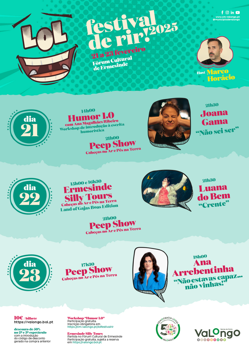 De 21 a 23 de fevereiro, o Fórum Cultural de Ermesinde, acolhe mais uma edição do hilariante LOL! Festival de Rir.