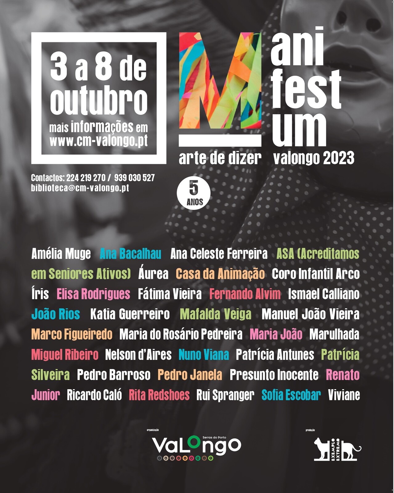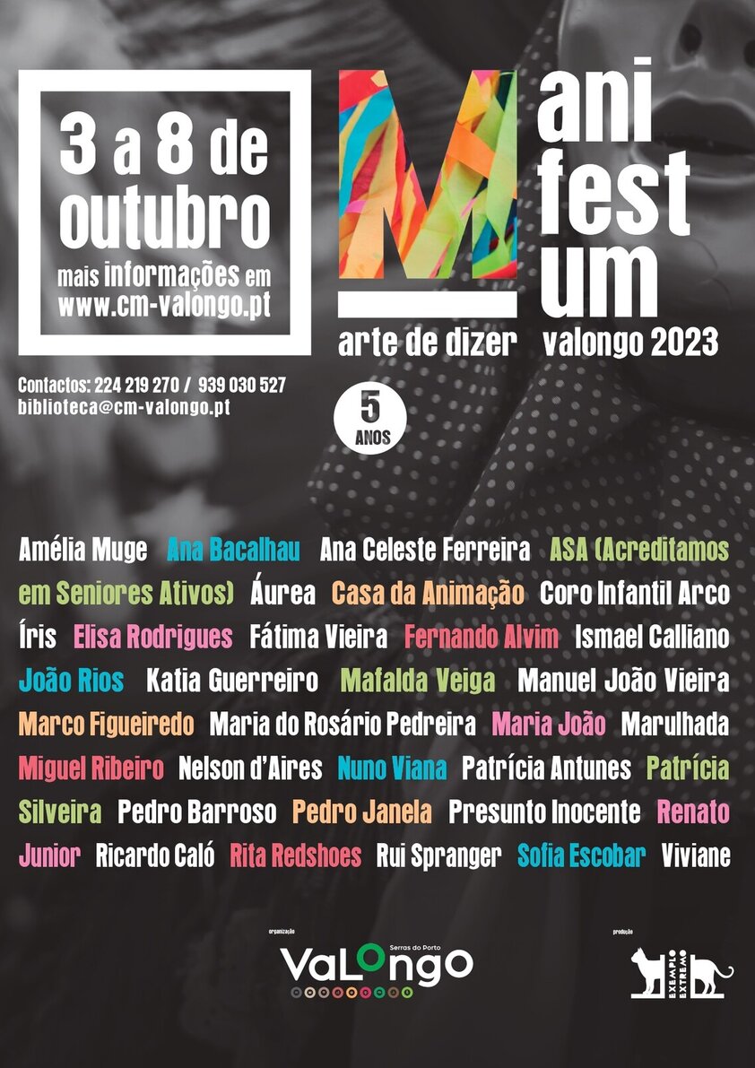 O 𝗠𝗔𝗡𝗜𝗙𝗘𝗦𝗧𝗨𝗠 𝗮𝗿𝘁𝗲 𝗱𝗲 𝗱𝗶𝘇𝗲𝗿 volta a cruzar nomes grandes da literatura, da poesia, do jornalismo, da música, da fotografia e da arte de dizer, num programa alargado de celebração dos 5 anos do projeto, que integra conversas, leituras, performances, apresentações e espetáculos, a decorrer em vários locais de Valongo e Ermesinde.