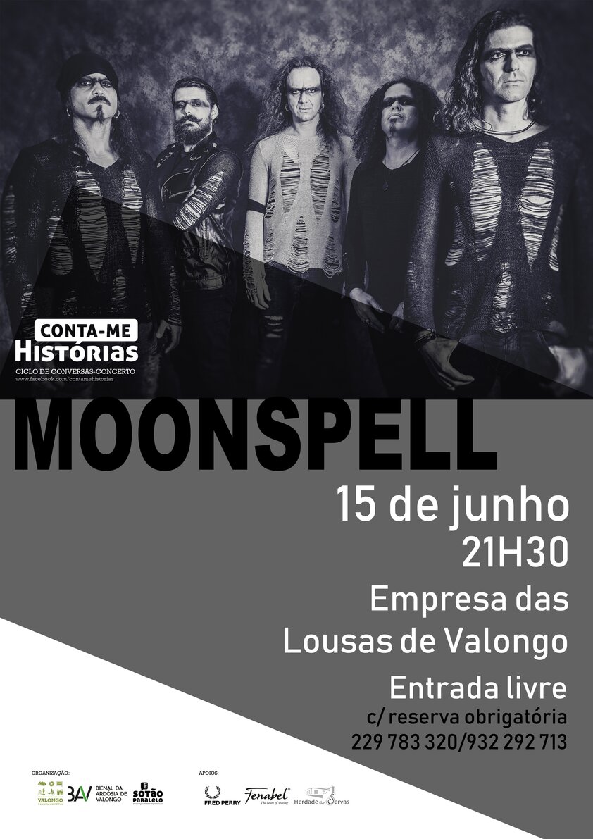 Dia 15 de junho, pelas 21h30, recebemos os Moonspell na Empresa das Lousas de Valongo, no âmbito do ciclo de conversas-concerto “Conta-me Histórias” onde conhecidos músicos portugueses revelam alguns pormenores menos conhecidos das suas carreiras. Estas histórias são acompanhadas por algumas das suas músicas mais conhecidas, em registo acústico.