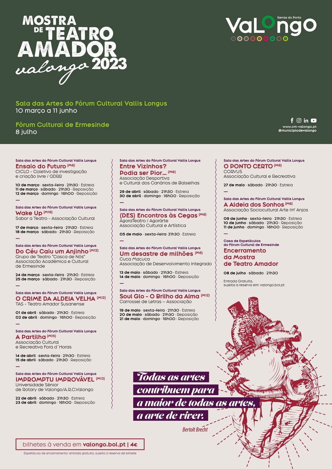 Os bilhetes para os espetáculos podem ser adquiridos em https://valongo.bol.pt