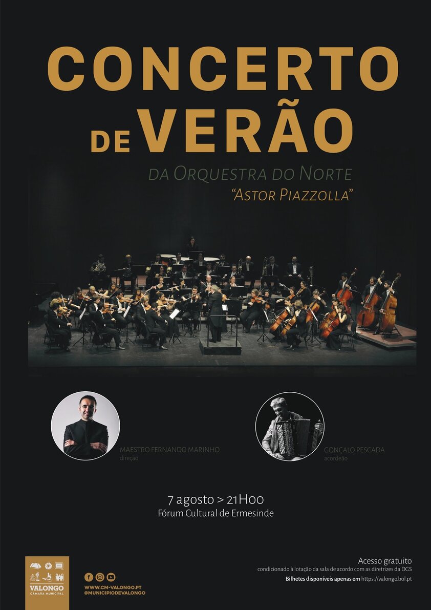 Integrado nos “Concertos de Verão” da Orquestra do Norte, o concerto conta com a direção do maestro Fernando Marinho e com a participação especial de Gonçalo Pescada no acordeão.