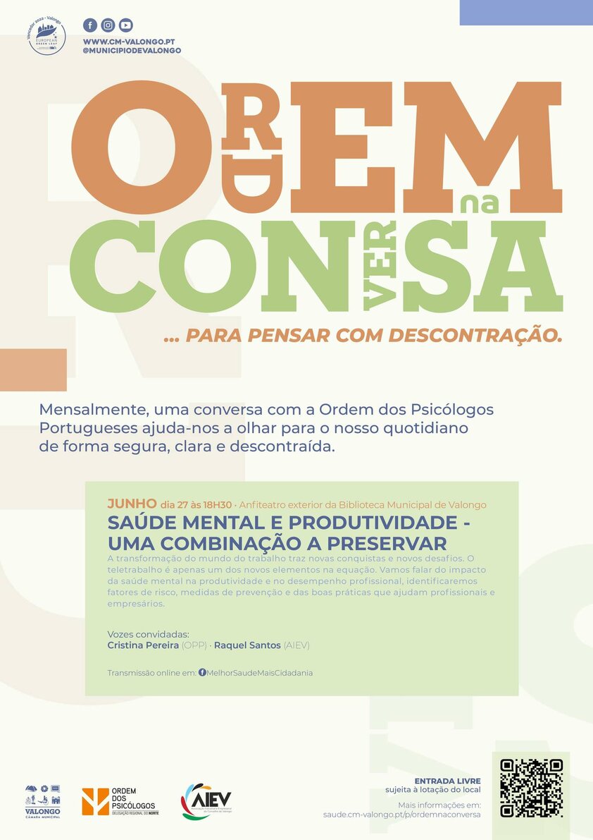 A próxima sessão do projeto "Ordem na Conversa", em parceria com a Ordem dos Psicólogos Portugueses, acontecerá já na próxima segunda-feira, 27 de junho, pelas 18h30.