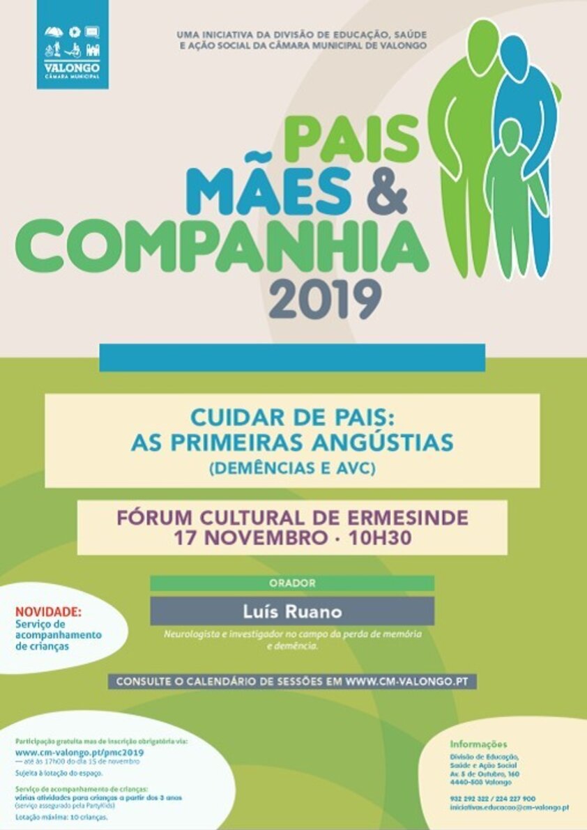 No dia 17 de Novembro, o Fórum Cultural de Ermesinde acolhe mais uma sessão Pais, Mães e Companhia. Desta vez, o tema é “Cuidar de Pais: As primeiras angústias” e o foco será o AVC e as demências.