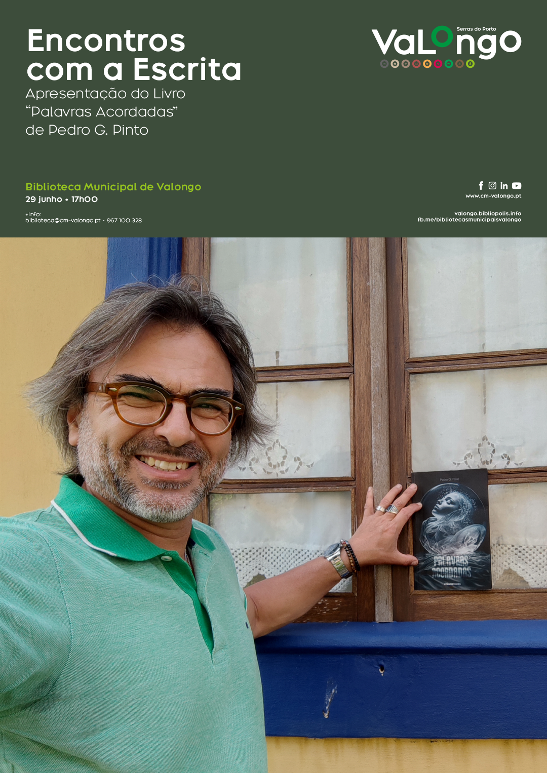 No próximo dia 29 de junho, pelas 17h00, a Biblioteca Municipal de Valongo recebe mais uma edição da iniciativa "Encontros com a Escrita". O escritor Pedro G. Pinto apresentará o seu livro "Palavras Acordadas"