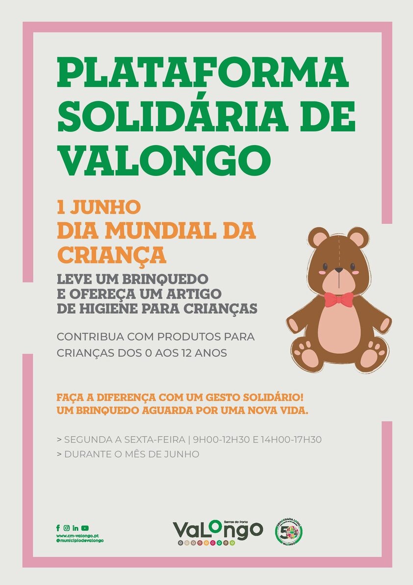 Plataforma Solidária de Valongo com campanha "Ofereça um artigo de higiene para crianças e leve um brinquedo"