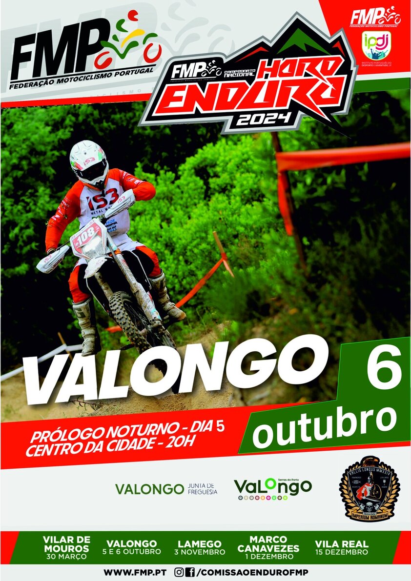 Depois do adiamento de setembro, a etapa de Valongo do Campeonato Nacional de Hard Enduro decorrerá no próximo fim de semana, 05 e 06 de outubro. Trata-se de uma organização do Moto Clube Imperium Romanum de Valongo, com o apoio da Câmara Municipal de Valongo e da Federação Portuguesa de Motociclismo.