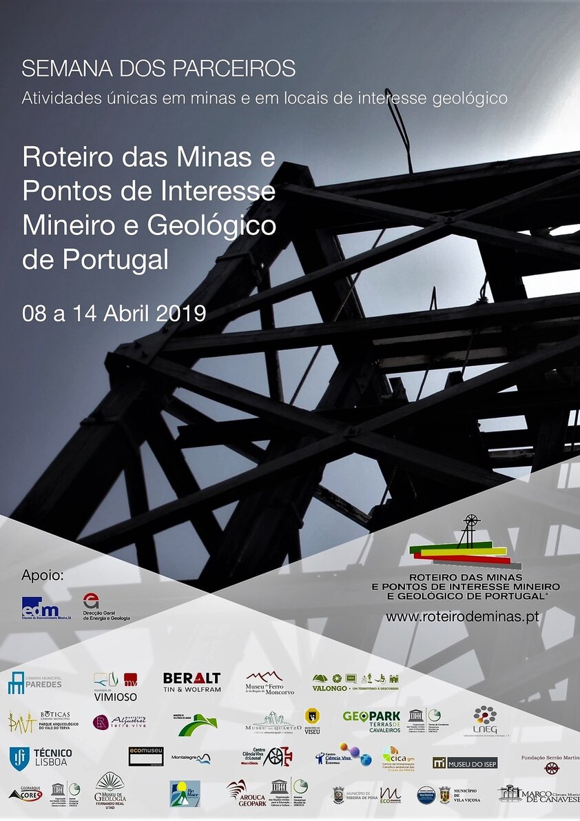 Na semana de 08 a 14 de abril realizar-se-ão diversas atividades, a nível nacional, relacionadas com a geologia e a mineração, da responsabilidade dos Parceiros do Roteiro das Minas e Pontos de Interesse Mineiro e Geológico de Portugal.