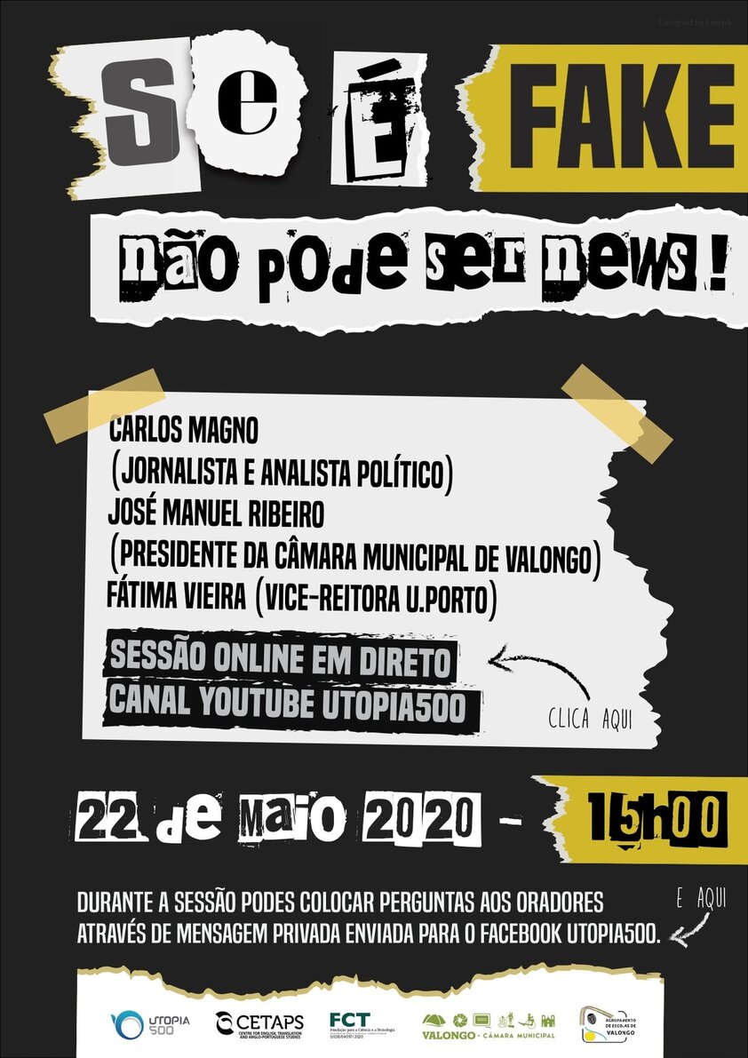 O projeto «Valongo, Cidade Utópica» promove uma sessão online em direto (live streaming no YouTube Utopia500 - https://www.youtube.com/channel/UCLb3VX41eoFzFR1c-exKAag/featured) sobre desinformação e notícias falsas, em particular em relação à COVID-19.