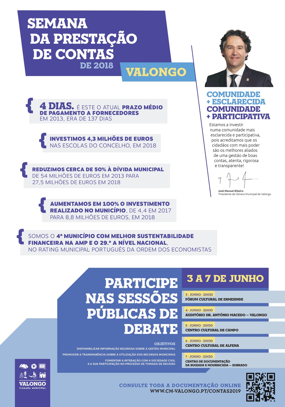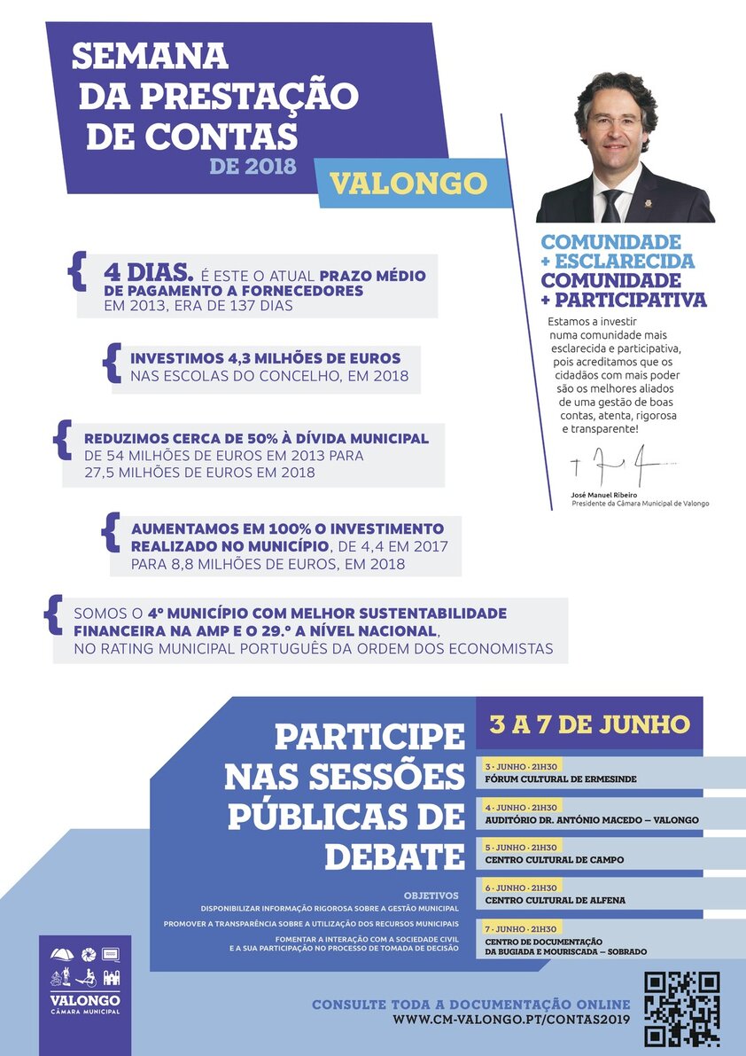 Com o lema «Comunidade mais esclarecida, Comunidade mais Participativa», a Semana de Prestação de Contas do Município de Valongo realiza-se de 03 a 07 de junho, nas cinco freguesias do concelho.