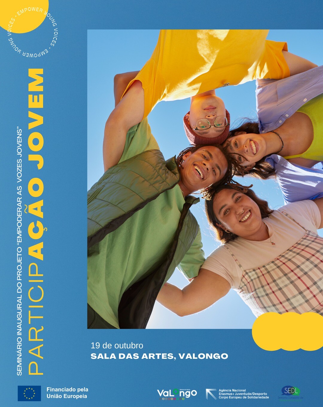 No dia 19 de outubro, das 10h00 às 13h00, a Sala das Artes, em Valongo, acolhe o seminário inaugural do projeto "Empoderar Vozes Jovens", um projeto financiado pela Agência Nacional Erasmus + e que tem como objetivo promover a participação ativa de jovens na comunidade.