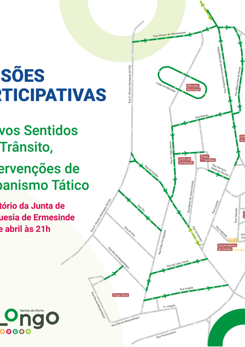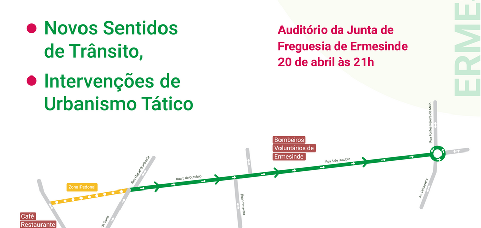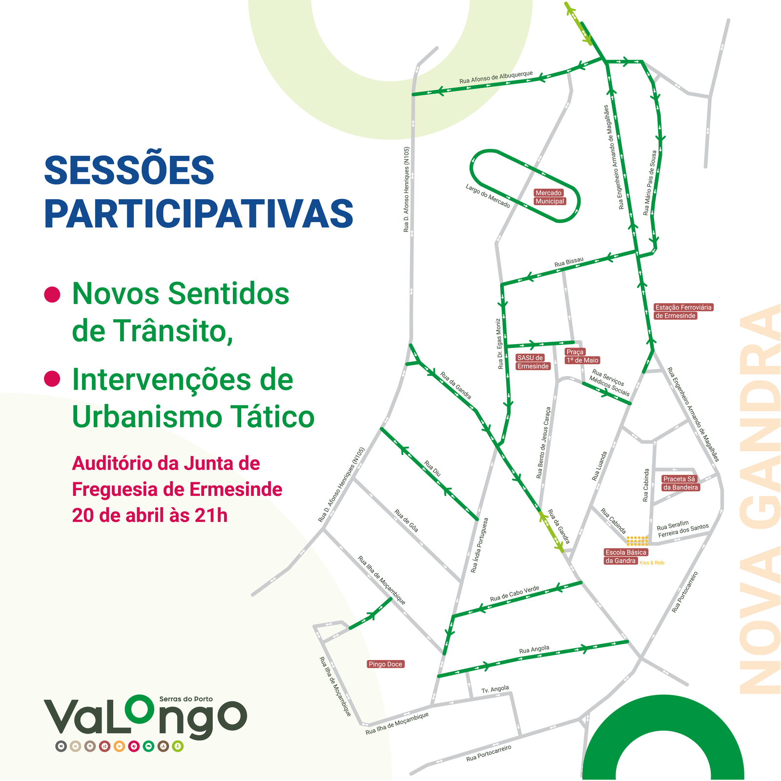No próximo dia 20 de abril, pelas 21h00, o Auditório da Junta de Freguesia de Ermesinde acolhe uma Sessão Participativa relativa às alterações propostas para a zona da Gandra e para a Rua 5 de outubro, em Ermesinde. Estas alterações estão relacionadas com a alteração dos sentidos de trânsito e do estacionamento, o que implica mudança de rotinas diárias por parte de todos/as.
