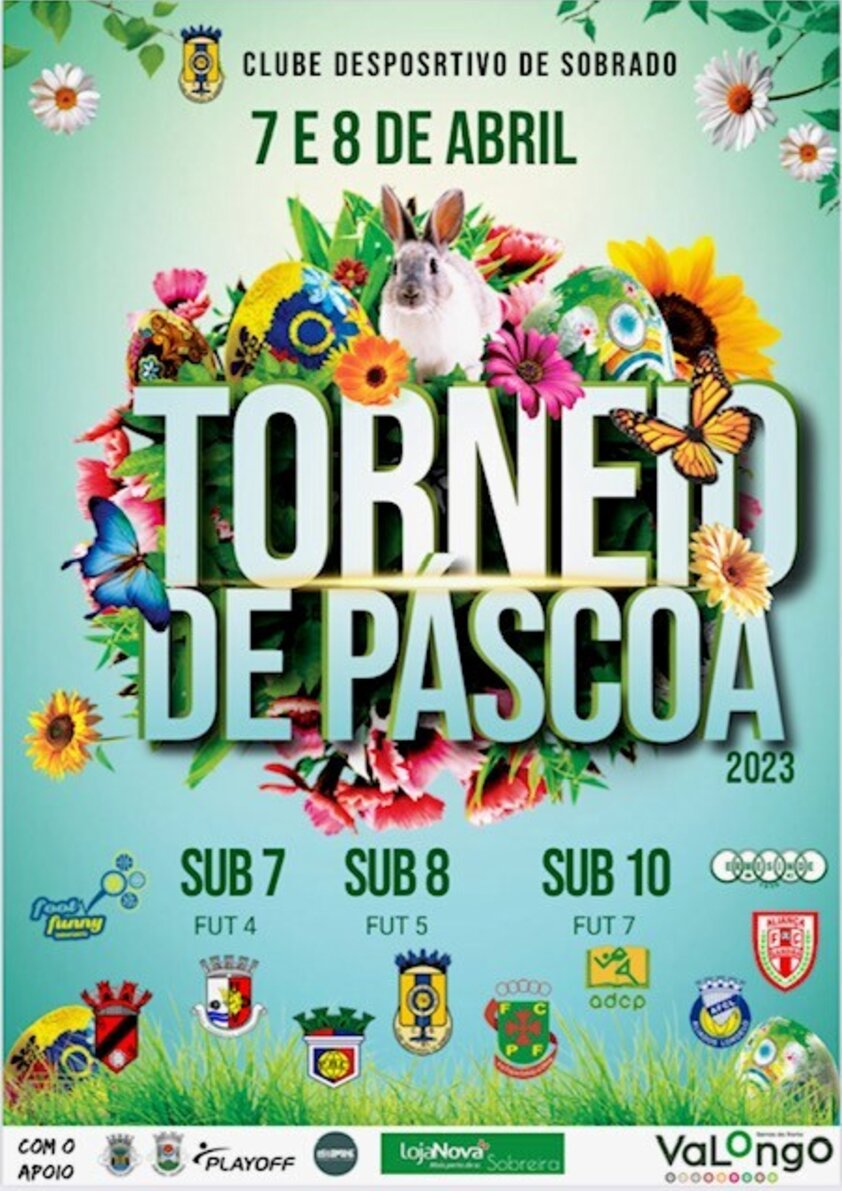 Com o apoio do Município de Valongo, o Clube Desportivo de Sobrado vai realizar nos próximos dias 7 e 8 de abril, no Estádio Municipal de Sobrado, entre as 09h00 e as 18h00, a edição de 2023 do Torneio de Páscoa. Este evento de futebol é dirigido aos escalões Sub 7, Sub 8 e Sub 9, com a participação de 18 equipas (6 equipas por escalão), prevendo-se cerca de 300 atletas.
