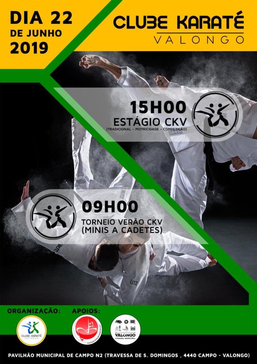 O Clube Karaté de Valongo com o apoio de o Município de Valongo irá levar a efeito um torneio de Verão e um estágio na modalidade de Karaté no próximo dia 22 de Junho, entre as 9 e as 19 horas, nas instalações do Pavilhão N.º 2 de Campo, com o objetivo de divulgar a modalidade e promover o Concelho.