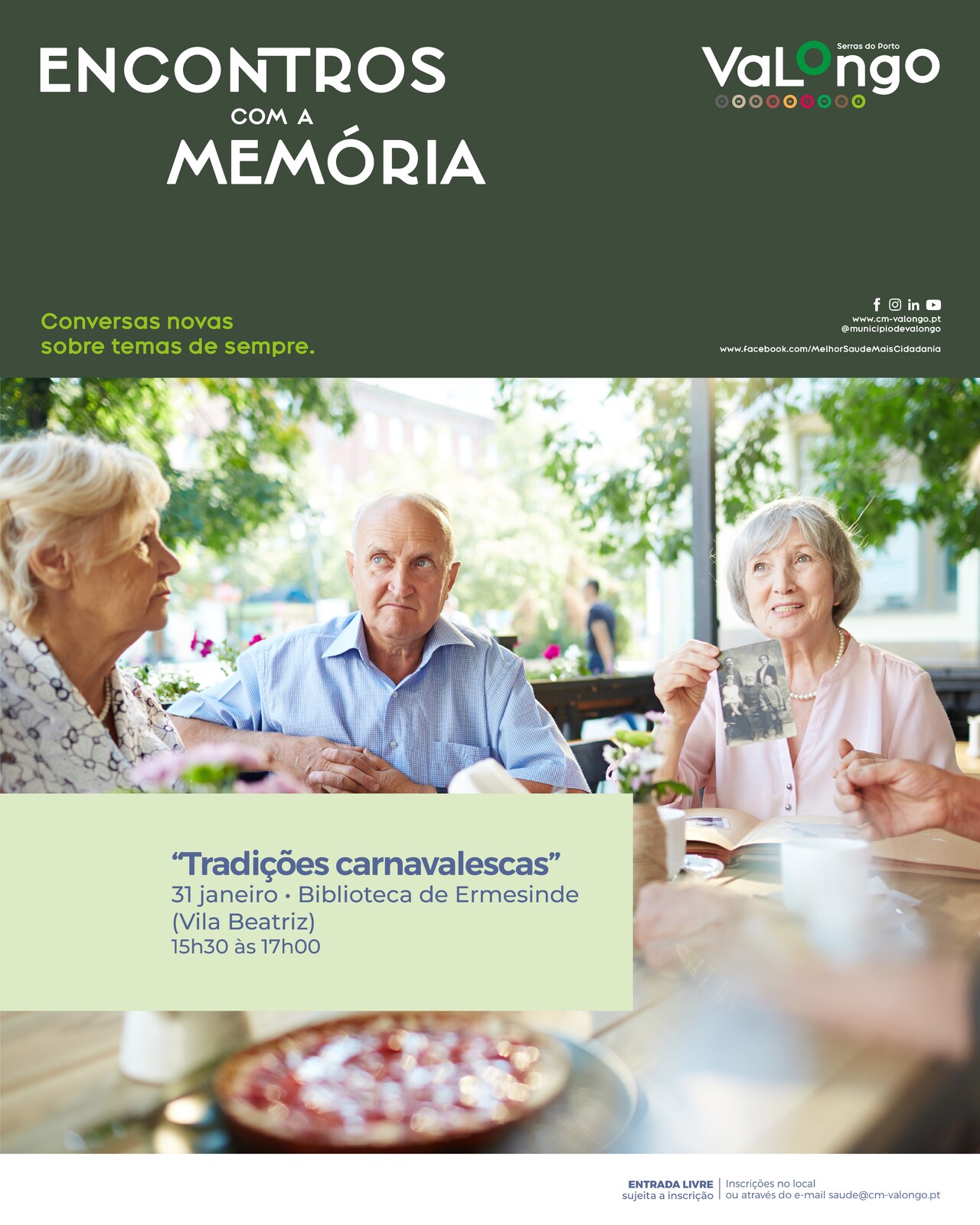 Com base no Plano de Ação da Saúde e no âmbito do projeto a Comunidade Cuidadora, que tem como objetivos diminuir o isolamento da população e melhorar a saúde mental, foi criada a iniciativa Encontros com a Memória.