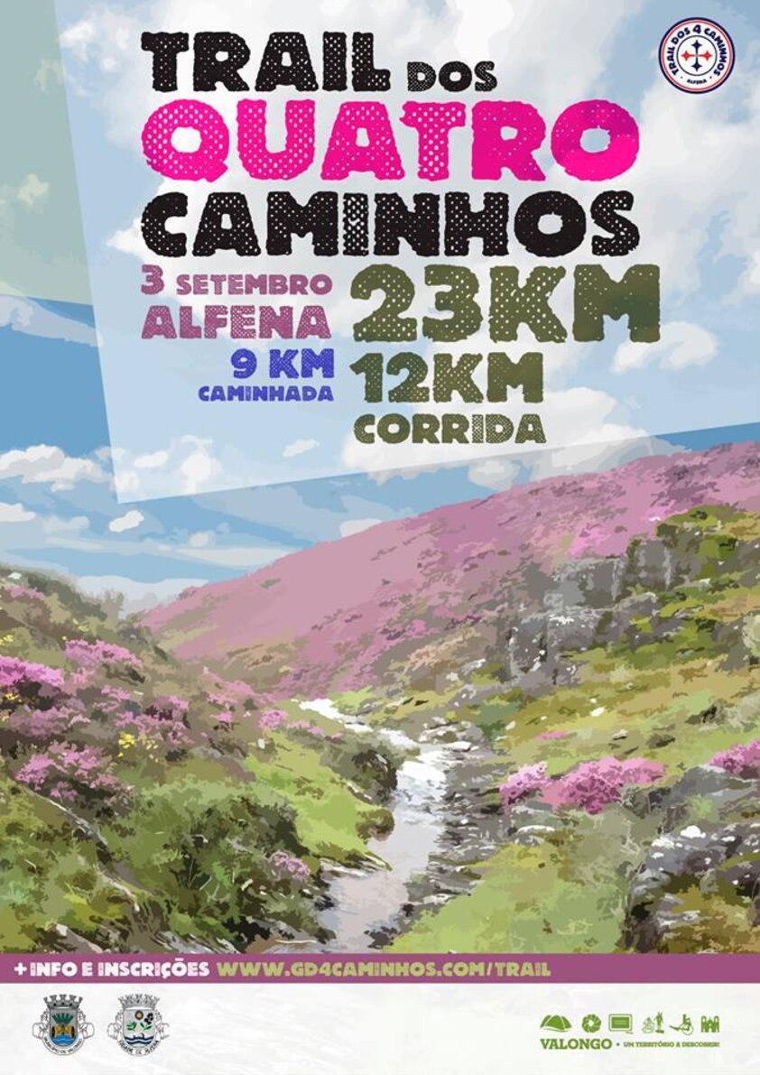 O Trail dos 4 Caminhos regressa nos dias 2 e 3 setembro aos trilhos e caminhos de Alfena, no concelho de Valongo. Organizado pelo Grupo Desportivo dos Quatro Caminhos, com o apoio da Junta de Freguesia de Alfena e da Câmara Municipal de Valongo, este evento desportivo será constituído por quatro percursos.
