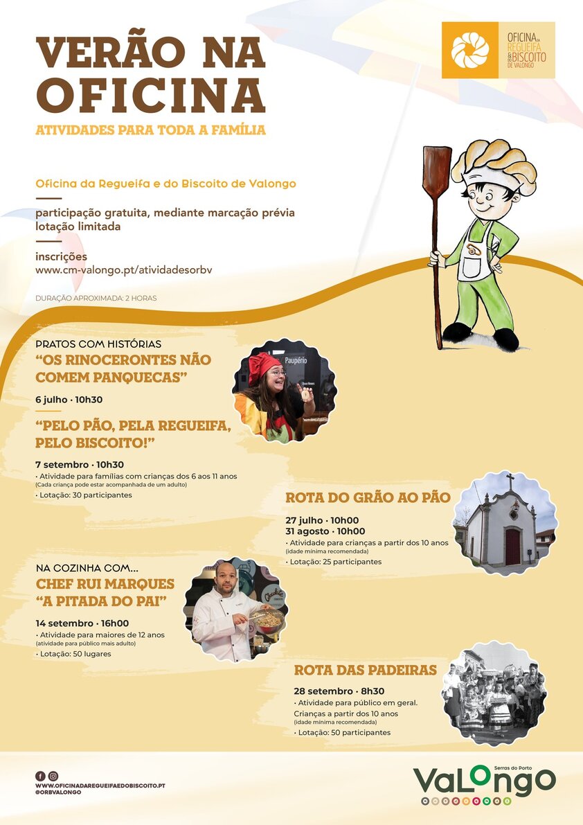 A Oficina da Regueifa e do Biscoito de Valongo disponibiliza durante os meses de julho, agosto e setembro, um programa dedicado a toda a família.