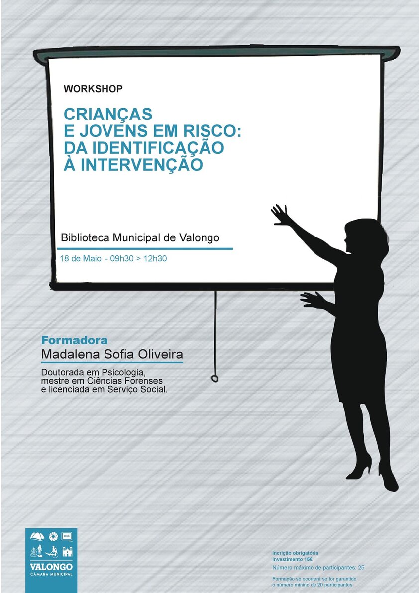 No âmbito do Mês Internacional da Prevenção dos Maus Tratos na Infância, a Câmara Municipal de Valongo vai promover no dia 18 de maio, entre as 09h30 e as 12h30, na Biblioteca de Valongo, o workshop “Crianças e Jovens em Risco: da identificação à intervenção” que terá como dinamizadora Madalena Sofia Oliveira. Esta atividade destina-se a profissionais das áreas das ciências humanas e sociais e da saúde, médicos/as, psicólogos/as, assistentes sociais, professores/as, educadores/as, polícias, advogados/as e todos/as aqueles/as que se trabalham nestas áreas e tem como objetivo identificar situações de maus tratos, abuso sexual e negligência, reconhecer estratégias preventivas e capacitar para sinalizar e intervir nestas matérias.