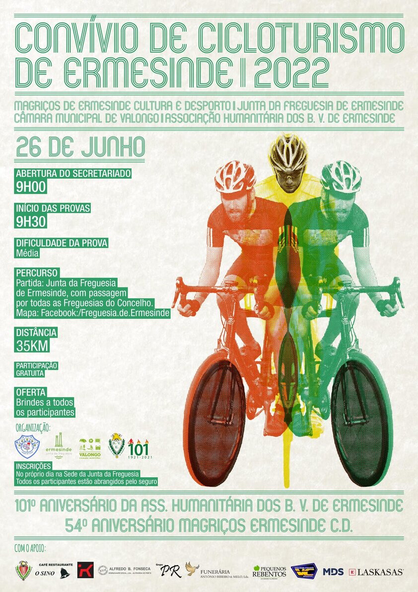 A Associação Magriços de Ermesinde Cultura e Desporto, em coorganização com, a Associação Humanitária dos Bombeiros Voluntários de Valongo, o Município de Valongo e a Junta de Freguesia de Ermesinde, vai realizar a 18.ª edição do Passeio de Cicloturismo, no dia 26 de junho. A partida acontecerá pelas 9h00, junto ao edifício da Junta de Freguesia de Ermesinde e a chegada será nas instalações dos BV Ermesinde, tendo passagem pelas restantes freguesias do concelho. Esta iniciativa está inserida nas Comemorações do 54.º Aniversário dos Magriços e no 101.º Aniversário dos Bombeiros Voluntários de Ermesinde.