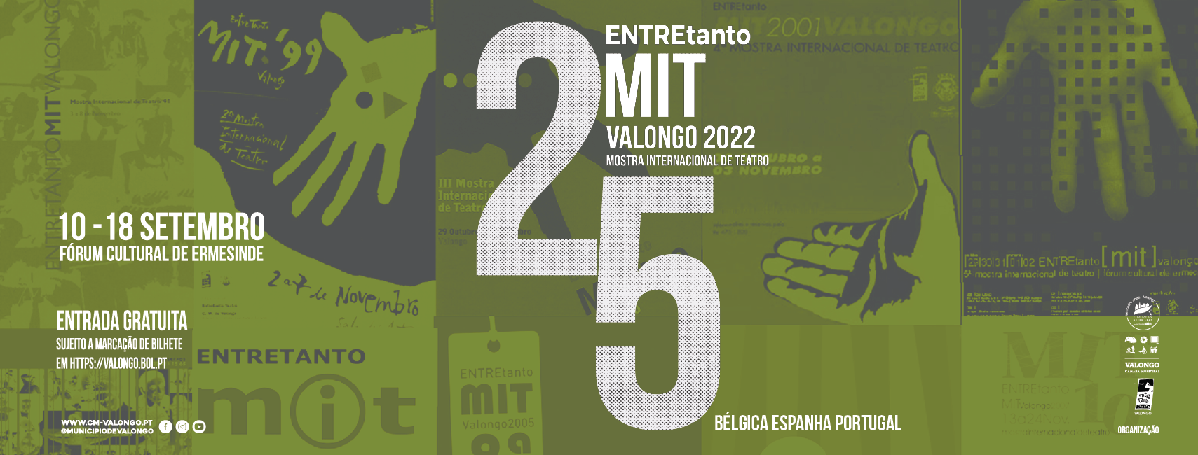 A Câmara Municipal de Valongo e o ENTREtanto TEATRO realizam a XXV Edição do ENTREtanto MIT Valongo - Mostra Internacional de Teatro - 2022, de 10 a 18 de setembro, no Fórum Cultural de Ermesinde.