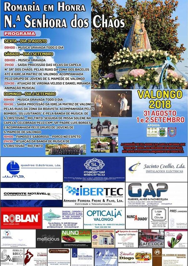 16 a 19 Ago 2018Local:Largo do Centenário – Rua de S. Mamede – Praça Machado dos Santos – Igreja Matriz de Valongo -