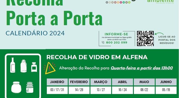 Calendário de Recolha Porta a Porta para 2024