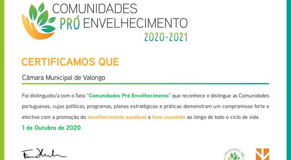 Município distinguido com selo “Comunidades Pró-Envelhecimento 2020/2021”