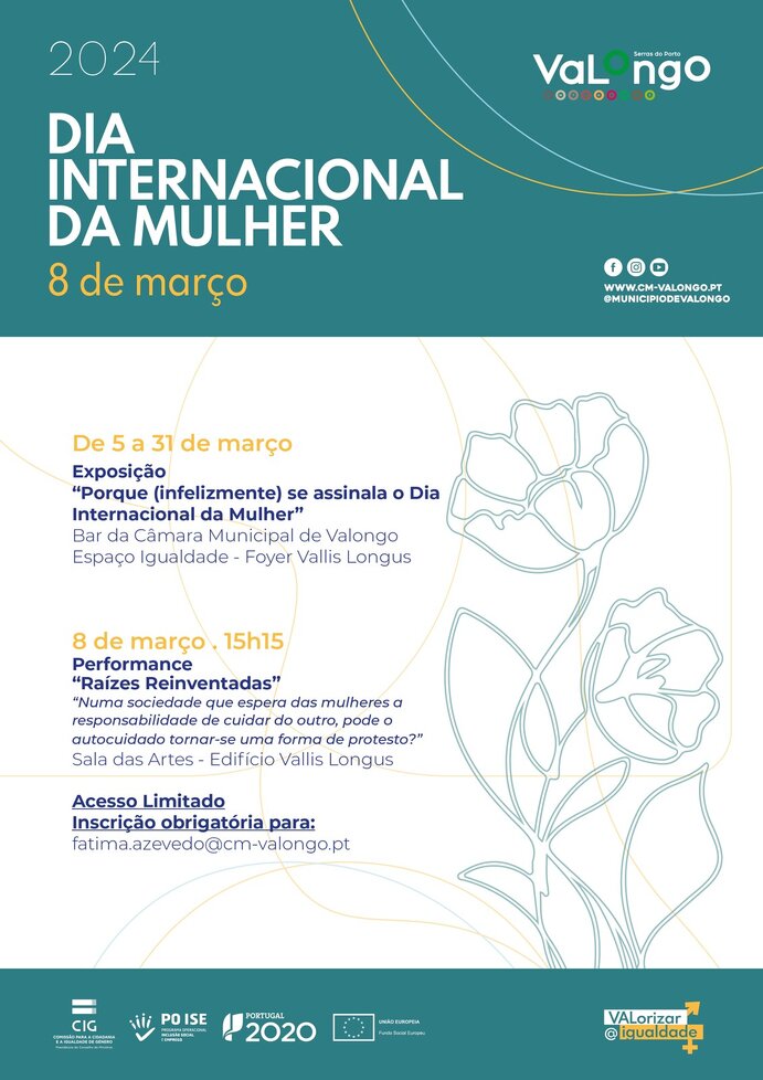 No próximo dia 08 de março assinala-se o Dia Internacional da Mulher e o Município de Valongo vai, como habitualmente, assinalar a data com a realização de duas atividades.