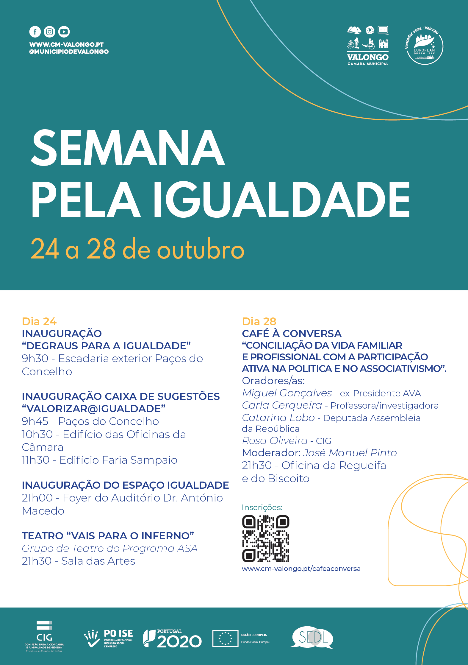 No dia 24 de outubro assinala-se o Dia Municipal para a Igualdade. Esta data tem como objetivo reforçar a temática da igualdade junto das comunidades locais, o respeito e a tolerância pela diferença, a inclusão, a cidadania ativa e os direitos humanos de cidadãos e cidadãs para o alcance de uma sociedade mais justa e mais
