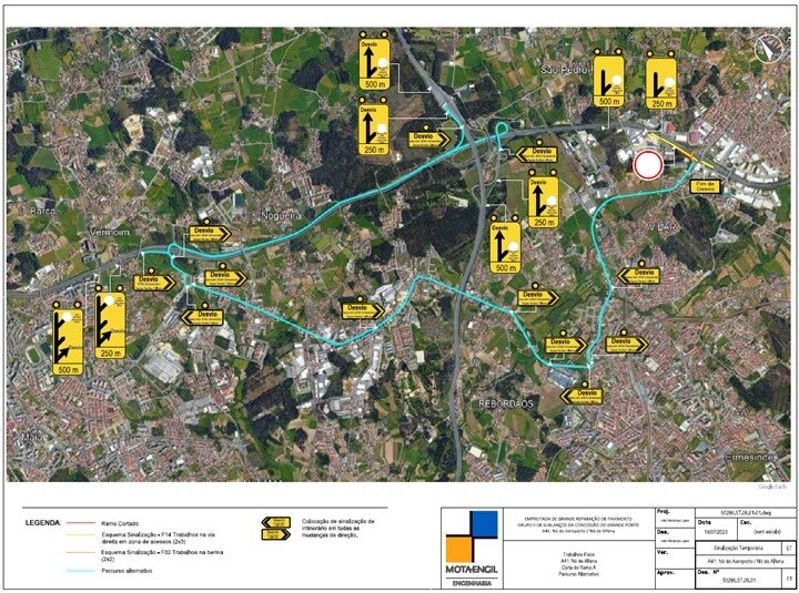 No âmbito da execução de trabalhos de beneficiação de pavimento nos Nós da Maia (A41/A3) e Alfena da A41, serão realizados trabalhos de pavimentação que implicarão alguns cortes de tráfego e a necessidade de implementar desvios provisórios. Estes trabalhos irão decorrer entre os dias 25 de setembro e 14 de outubro, em horário noturno, entre as 21:00h e as 07:00h, e os condicionamentos e desvios estarão devidamente sinalizados nos locais, de acordo com os esquemas de sinalização aprovados.
