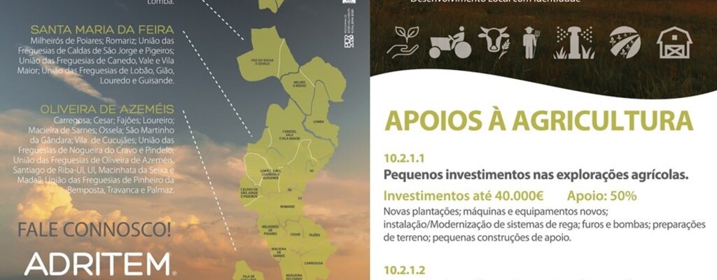Apoio a projetos de investimento superiores a 1 000€ e inferiores 40 000€, com taxa de apoio a fundo perdido de 50%, na aquisição de plantas, preparação de terrenos, máquinas e equipamentos novos, instalação ou modernização de sistemas de rega e pequenas construções de apoio.