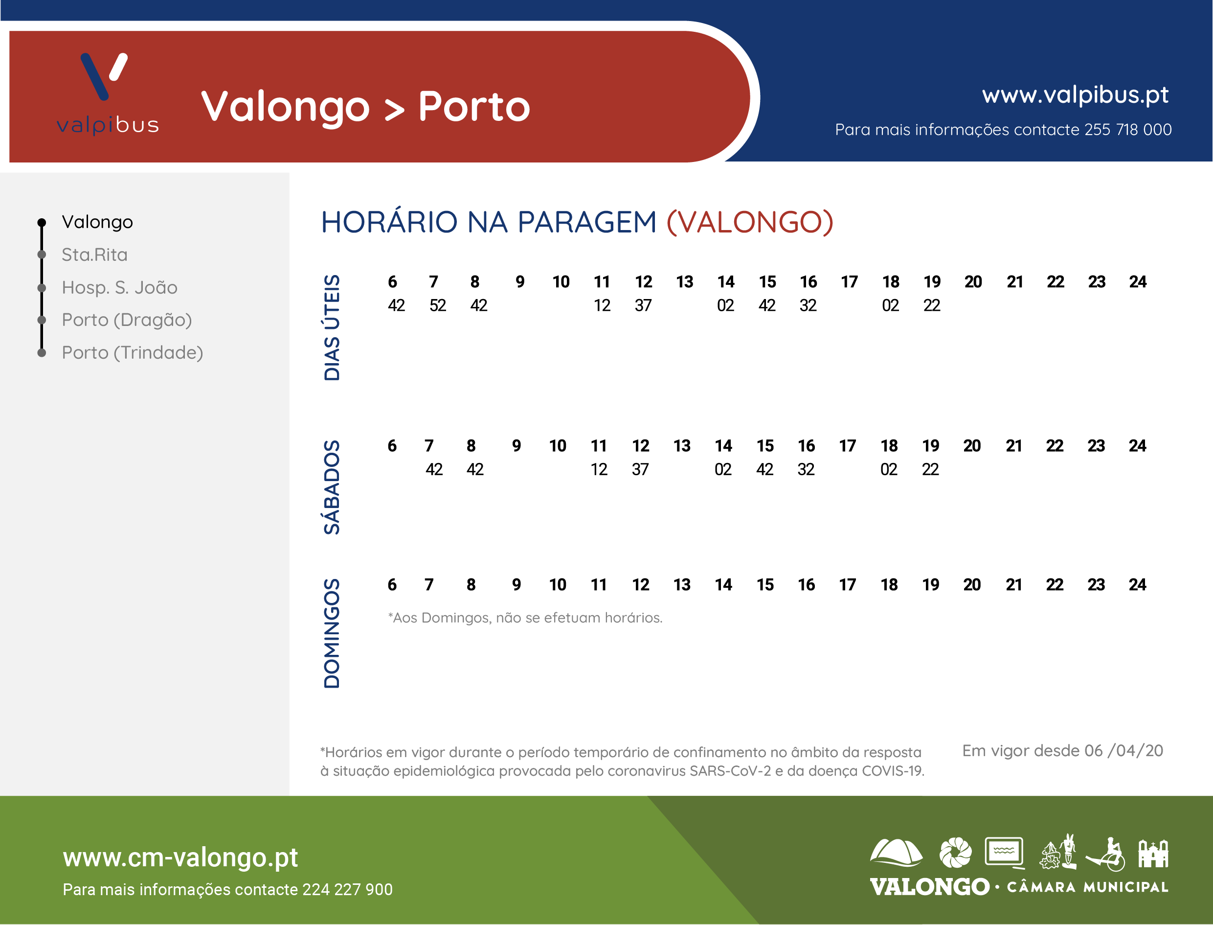 Horários - L61 Matosinhos-Valongo