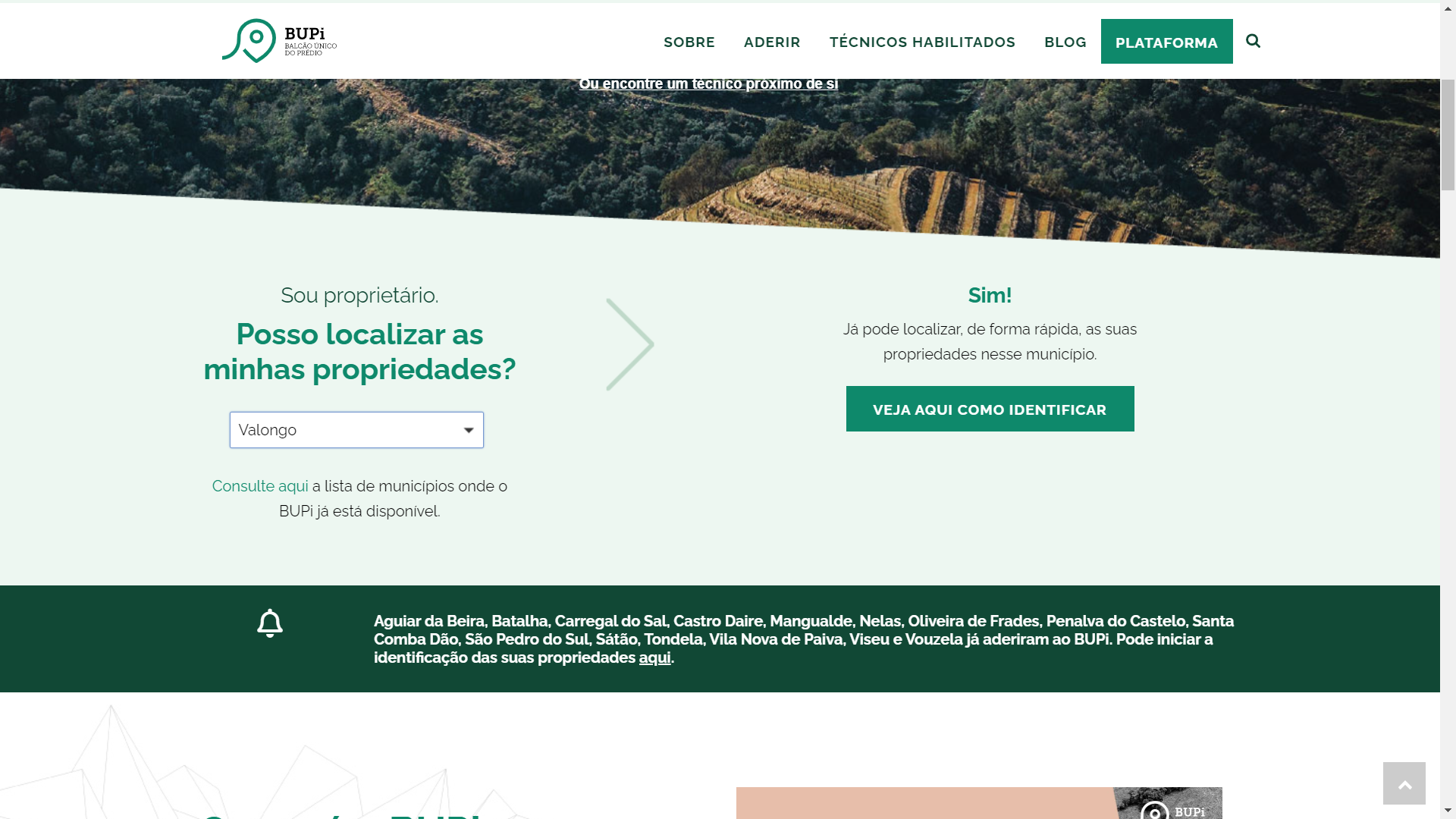 O BUPi é uma plataforma que permite aos proprietários identificar os seus prédios rústicos e mistos, remotamente, de forma simples e gratuita, num balcão ou "online", através de https://bupi.gov.pt/