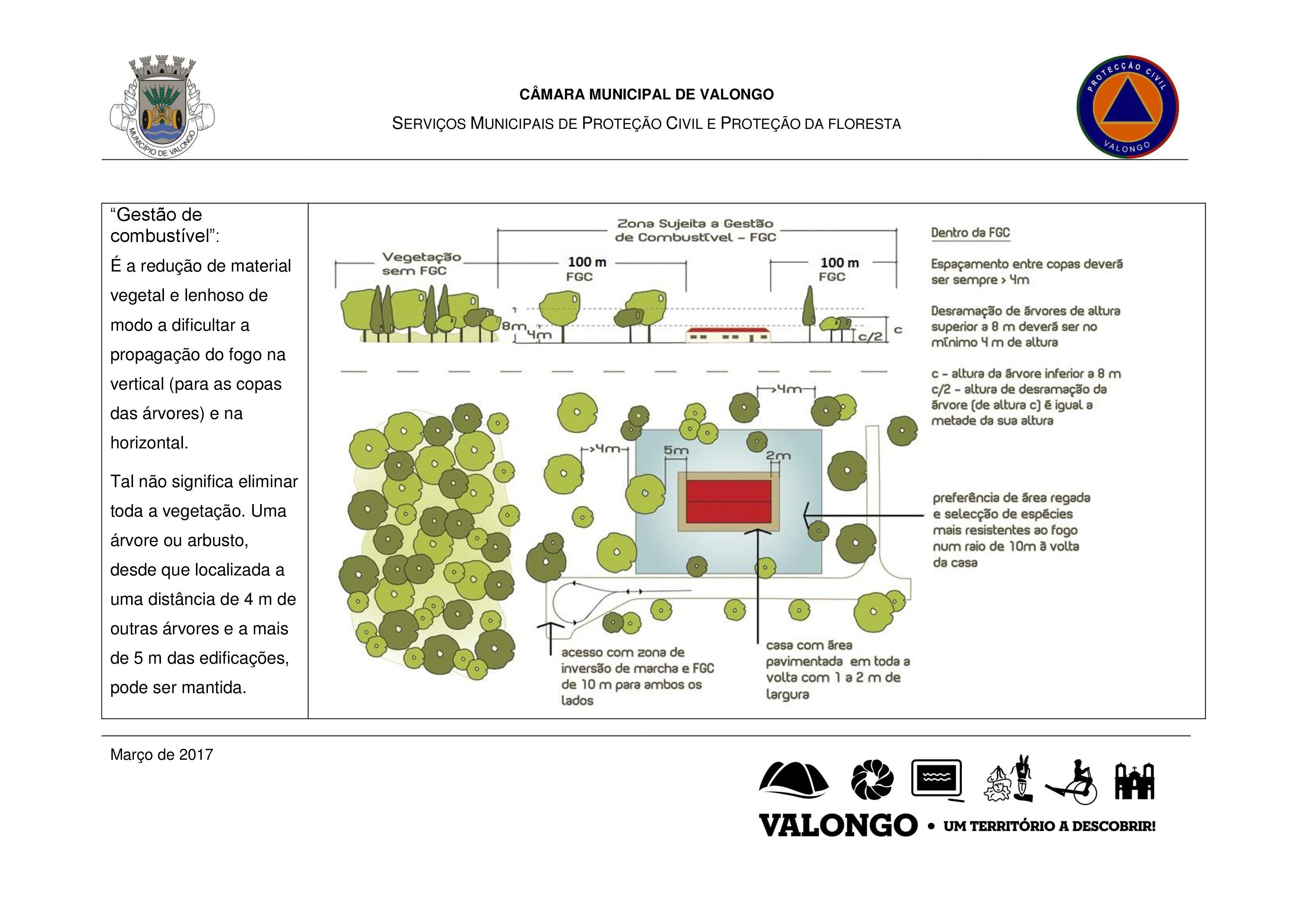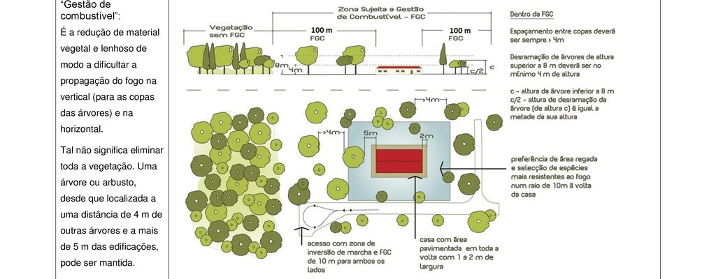 A Gestão de Combustíveis é obrigatória, numa faixa não inferior a 100 metros, nos aglomerados populacionais inseridos ou confinantes com espaços florestais, previamente definidos no Plano Municipal de Defesa da Floresta Contra Incêndios.