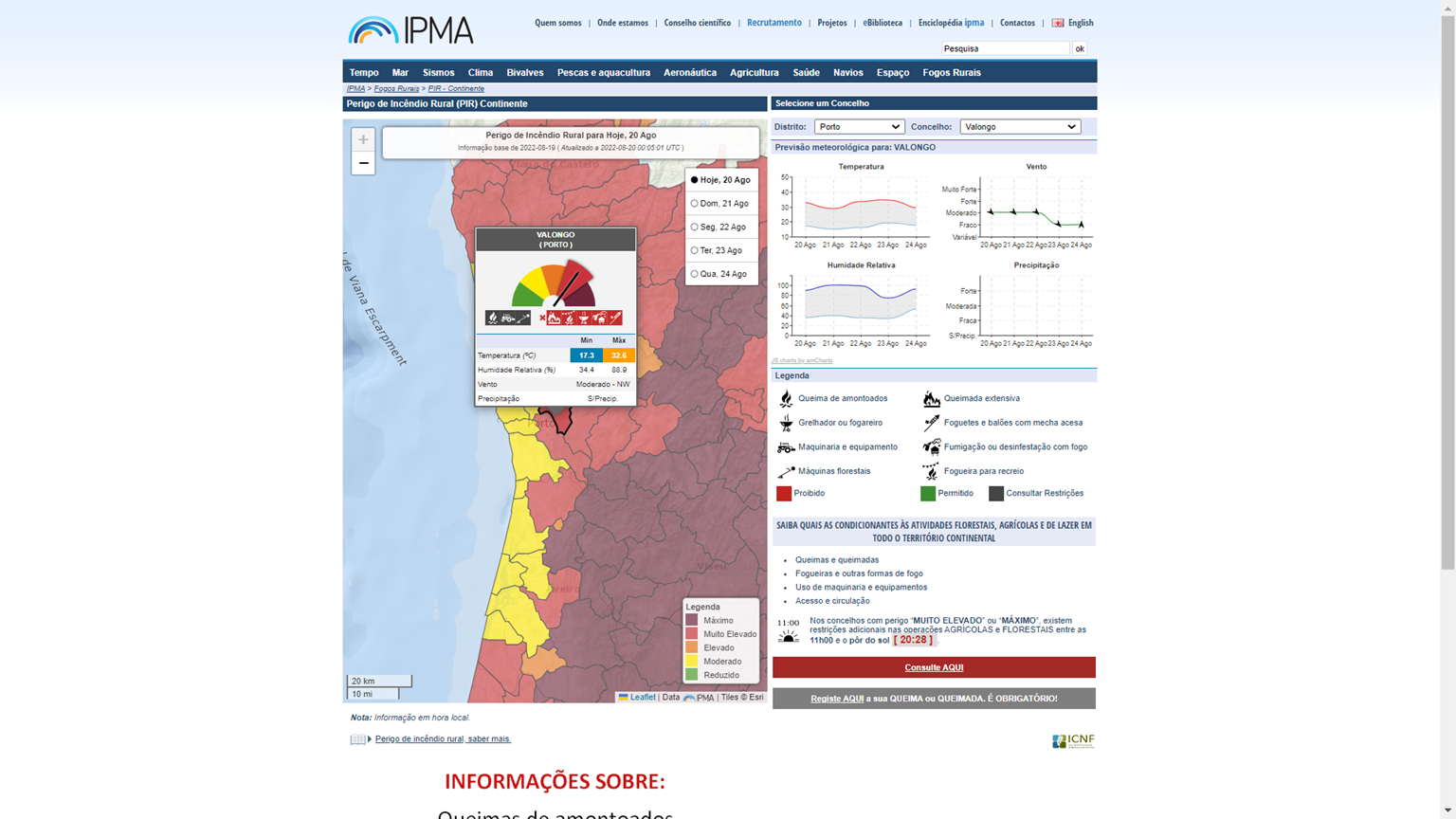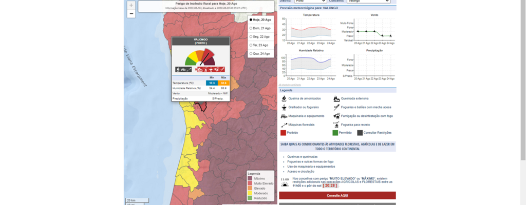 Considerando o risco de incêndio rural para os próximos dias, com grande parte do território continental nos níveis Elevado, Muito Elevado e Máximo, o Governo declarou situação de alerta entre as 00h00 de 21 de agosto de 2022 e as 23h59 de 23 de agosto de 2022, para todo o território continental.