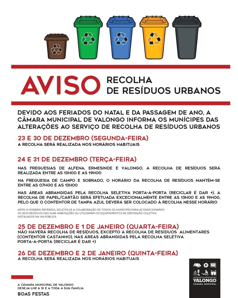 Nesta página encontra alertas e avisos que se relacionam com o Concelho de Valongo, emitidos quer pela Câmara Municipal de Valongo, quer por outras entidades. Informações relativas às Reuniões da Câmara e da Assembleia Municipal, interrupções de trânsito, interrupções no fornecimento de água são alguns dos exemplos que poderá encontrar neste espaço.