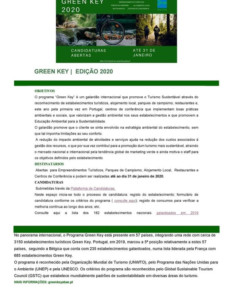 Abertura de candidaturas ao programa GREEN KEY I EDIÇÃO 2020