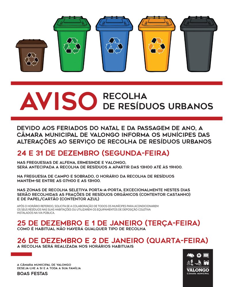 Nesta página encontra alertas e avisos que se relacionam com o Concelho de Valongo, emitidos quer pela Câmara Municipal de Valongo, quer por outras entidades. Informações relativas às Reuniões da Câmara e da Assembleia Municipal, interrupções de trânsito, interrupções no fornecimento de água são alguns dos exemplos que poderá encontrar neste espaço.