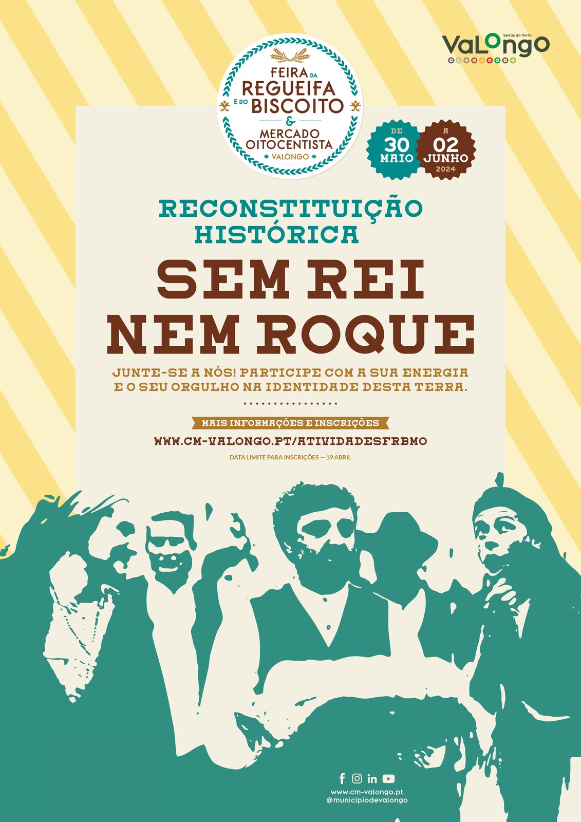 No âmbito de mais uma edição da Feira da Regueifa e do Biscoito e Mercado Oitocentista, o Município de Valongo promove uma oportunidade única para todos os interessados em participar na dinamização do núcleo de Recriação Histórica Oitocentista (na Rua Sousa Paupério e Largo Dr. Nunes da Ponte), juntando a força e a voz da população com a de vários atores profissionais, numa reconstituição histórica dos momentos que precederam a 2ª invasão francesa na peça de teatro “Sem Rei Nem Roque”.