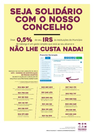 - Ajude as instituições do concelho doando 0,5% do IRS