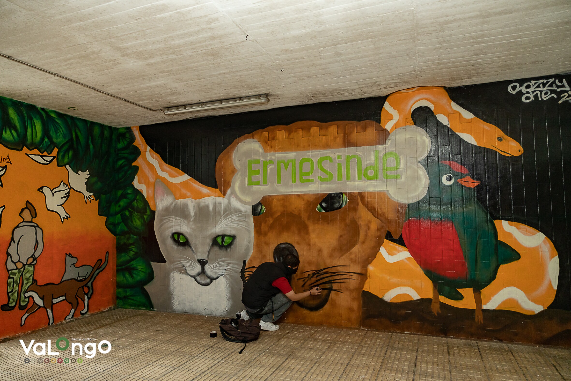 O Posto Veterinário Municipal localizado na Passagem Antiga da Estação de Ermesinde está mais bonito, com um novo mural inspirado nos animais domésticos da autoria dos alunos da Escola de Segunda Oportunidade de Valongo (E2OV).