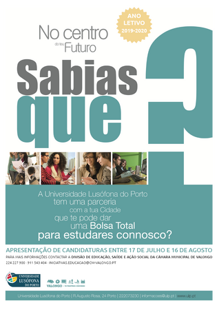 - Bolsa de Estudo da Universidade Lusófona do Porto – ano letivo 2019-2020