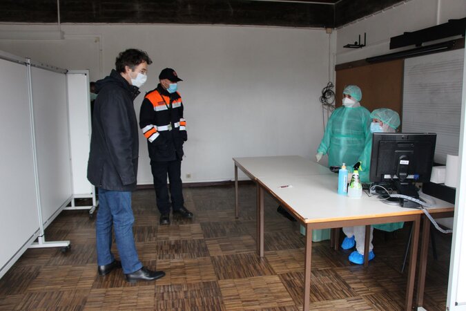 O Presidente da Câmara de Valongo, José Manuel Ribeiro, acompanhou hoje a abertura do Centro de Rastreios à Covid-19, na Escola EB23 Vallis Longus, em Valongo. Esta estrutura vai evitar deslocações dos utentes do concelho ao Hospital de São João, no Porto, e dar resposta à fase de mitigação da pandemia, que exige a realização do maior número de testes possível.