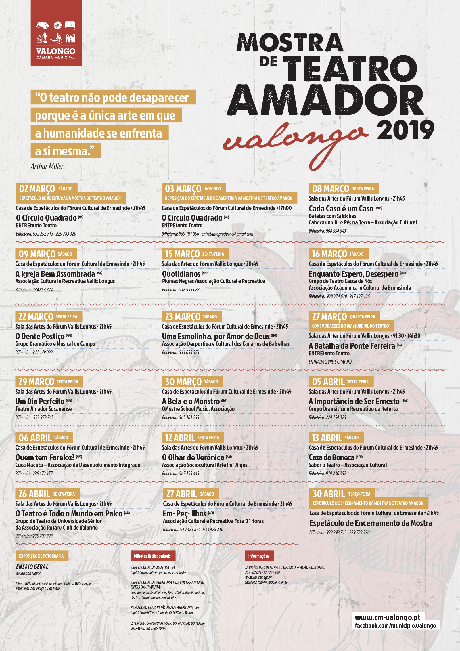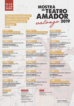 Será assim a edição de 2019 da Mostra de Teatro Amador do Concelho de Valongo que estará em palco entre 02 de março e 30 de abril, ora na Sala das Artes, em Valongo, ora na Casa de Espetáculos do Fórum Cultural de Ermesinde.