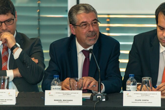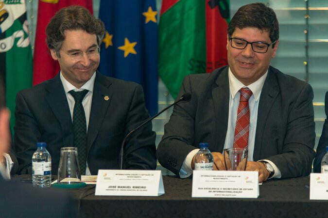 A capacitação dos Municípios para a atração de investimento foi o mote da sessão de informação que se realizou no dia 15 de novembro no Fórum Cultural de Ermesinde, Valongo, com a presença do Secretário de Estado da Internacionalização, Eurico Brilhante Dias; do Presidente da Associação Nacional de Municípios Portugueses, Manuel Machado, do Presidente da AICEP, Luís Castro Henriques, do CEO da AICEP Global Parques, Filipe Costa, e do Presidente da Câmara de Valongo, José Manuel Ribeiro.