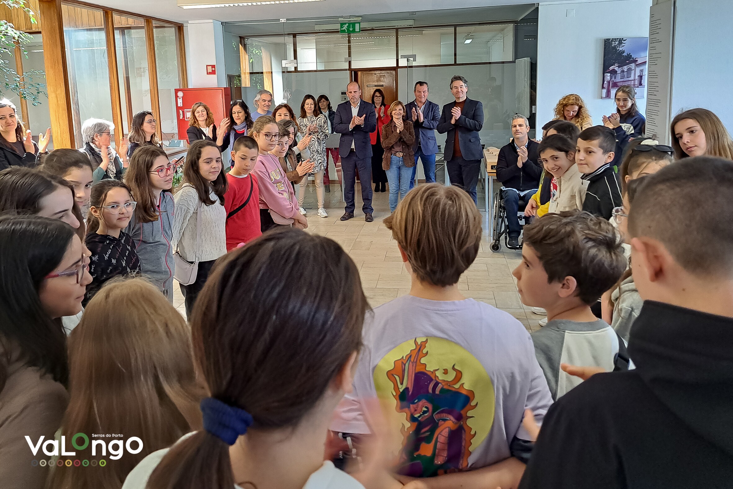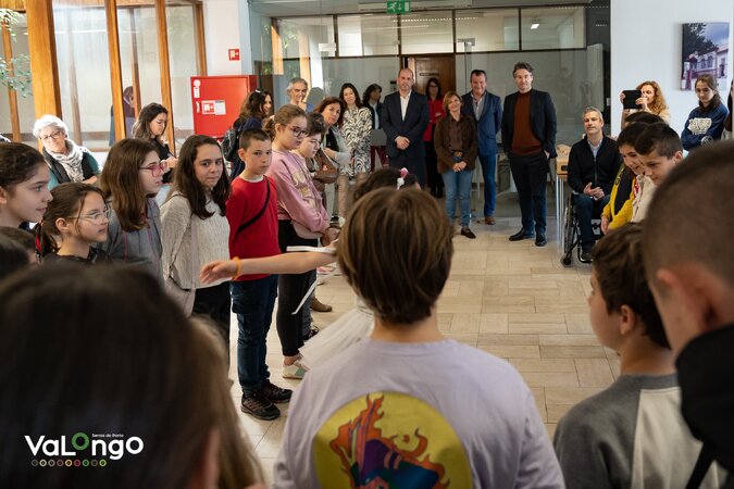 No âmbito da iniciativa «Leituras em Movimento» promovida pela Biblioteca Municipal de Valongo, um grupo de alunos e professores italianos, que se encontram a fazer um intercâmbio com a Escola Vallis Longus, acompanharam os alunos, que realizaram as leituras em Movimento no edifício da Câmara Municipal de Valongo, no dia 28 de março.