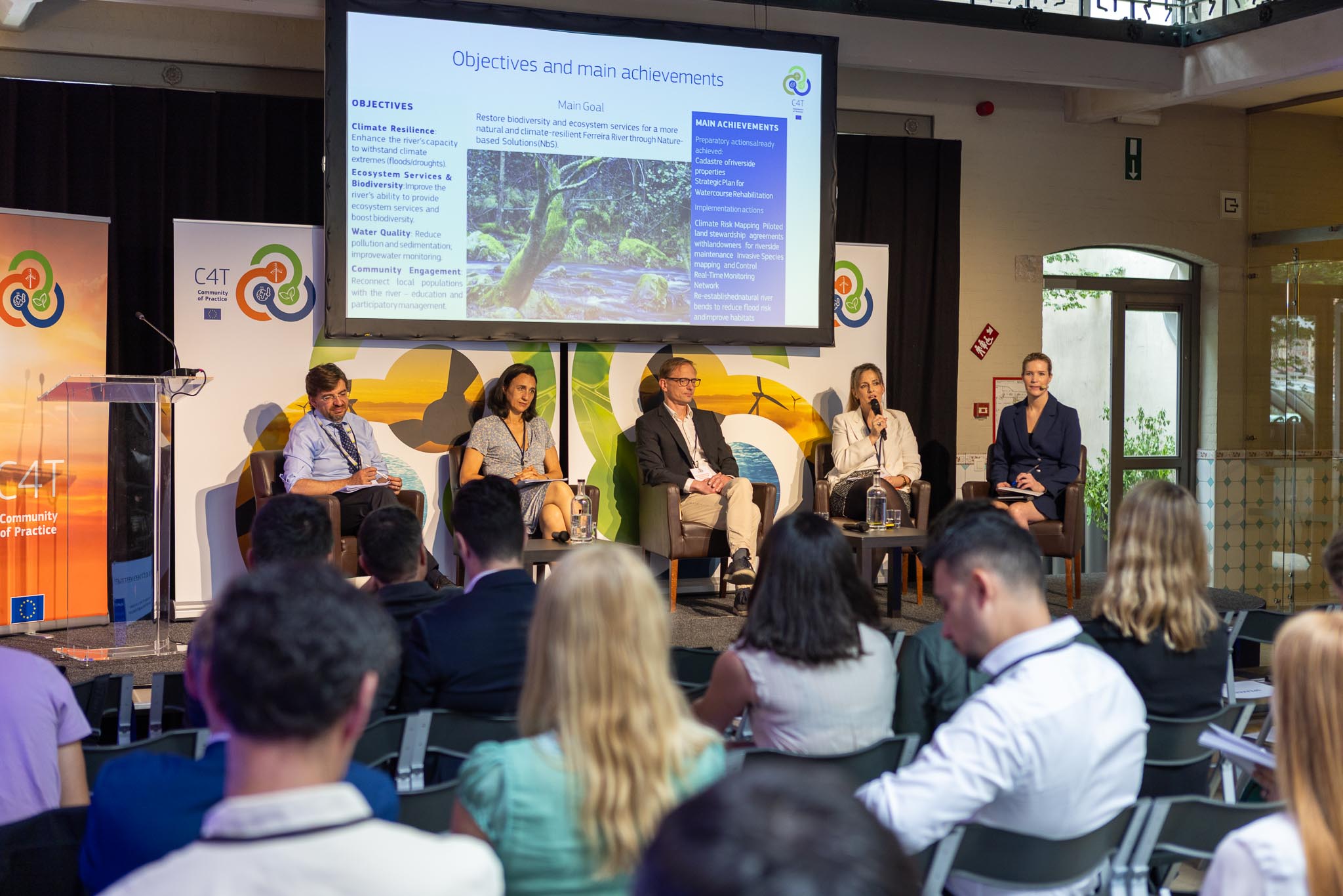 Integrando o painel “Driving Sustainability Transitions through Cohesion Policy” o Município de Valongo teve a oportunidade de partilhar o trabalho que tem vindo a desenvolver na área da gestão sustentável dos recursos hídricos, destacando o Plano Estratégico de Reabilitação das Linhas de Água de Valongo e o projeto de reabilitação elaborado com ajuda da assistência técnica prestada no âmbito do programa C4T Groundwork, em 2024, direcionado para o Rio Ferreira.