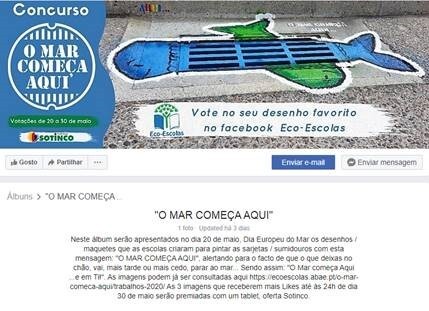 Assim, no dia 20 de maio, comemora-se o Dia Europeu do Mar, e inicia-se a votação os desenhos/maquetes criadas por crianças e jovens das Eco-Escolas, em linha com a mensagem “O MAR COMEÇA AQUI“, alertando para o facto de que o que fica no chão, vai, mais tarde ou mais cedo, parar ao mar! Sendo assim: “O Mar começa Aqui …e em Ti!”